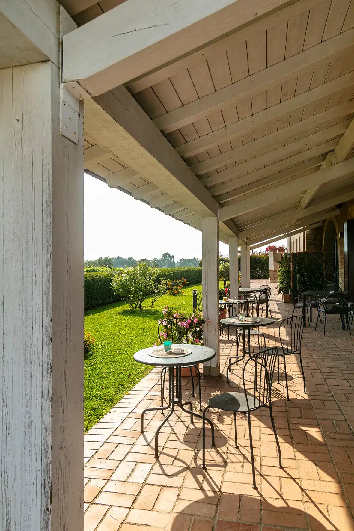 Le finestre della torre aprono lo sguardo sul paesaggio: all’alba il sole filtra tra i filari, al tramonto tutto si tinge d’oro e il silenzio diventa suono.